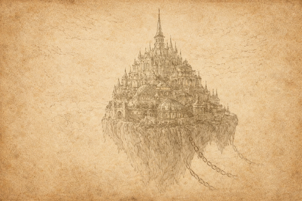 Certains parlent de cités suspendues, d’autres de simples refuges battus par le vent. Tous, en revanche, évoquent ce qui s’étend au-delà : la Mer de l’Oubli.
